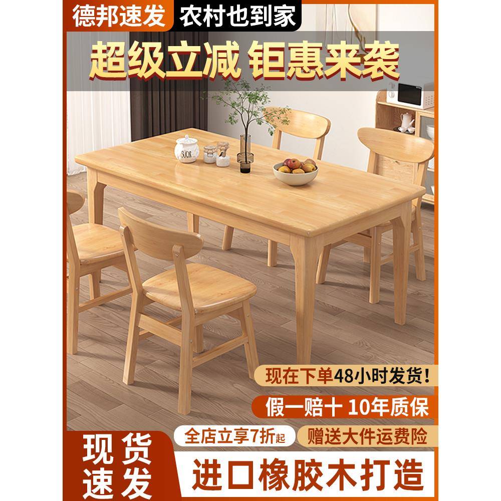 新款全实木餐桌家用小户型餐桌椅组合4人6人原木色长方形吃饭桌子