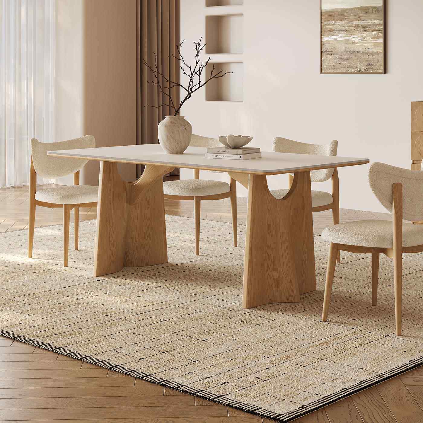 奥古斯特 原木色实木餐桌2025新款家用长方形日式奶油风岩板餐桌