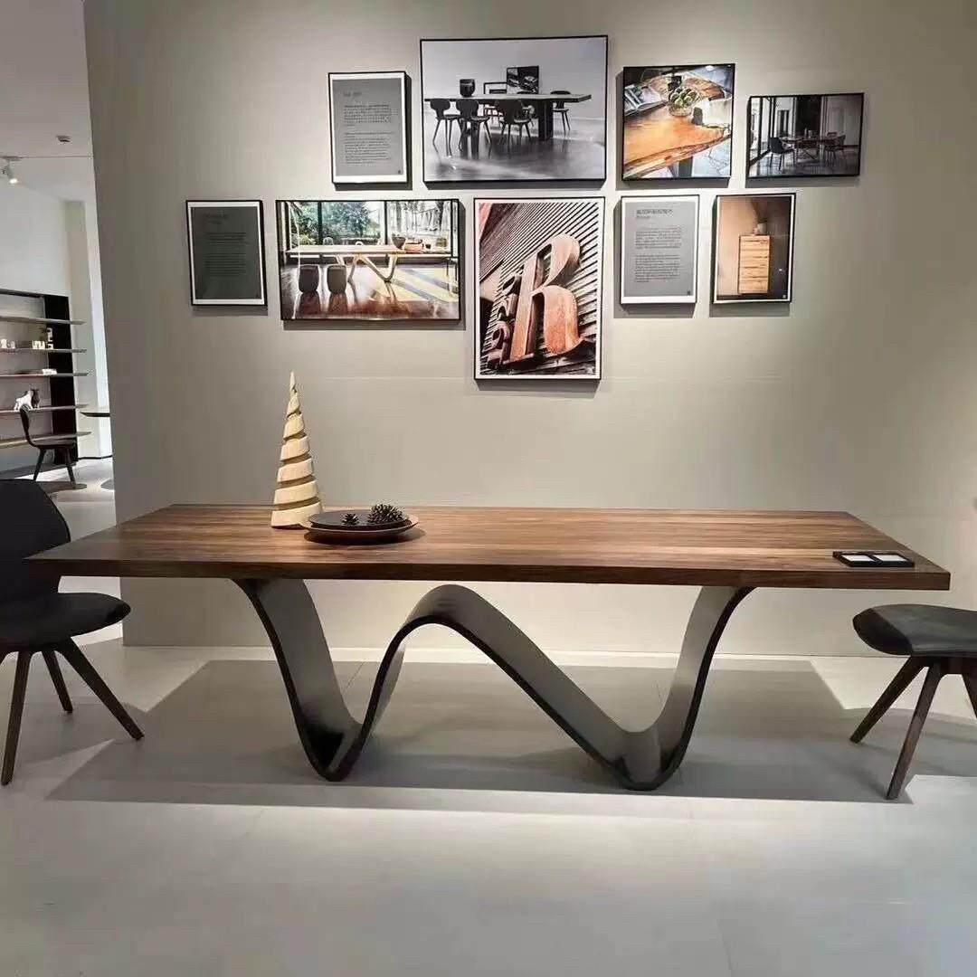 意式极简实木餐桌胡桃木色原木饭桌家用白蜡木茶桌客厅长桌工作台