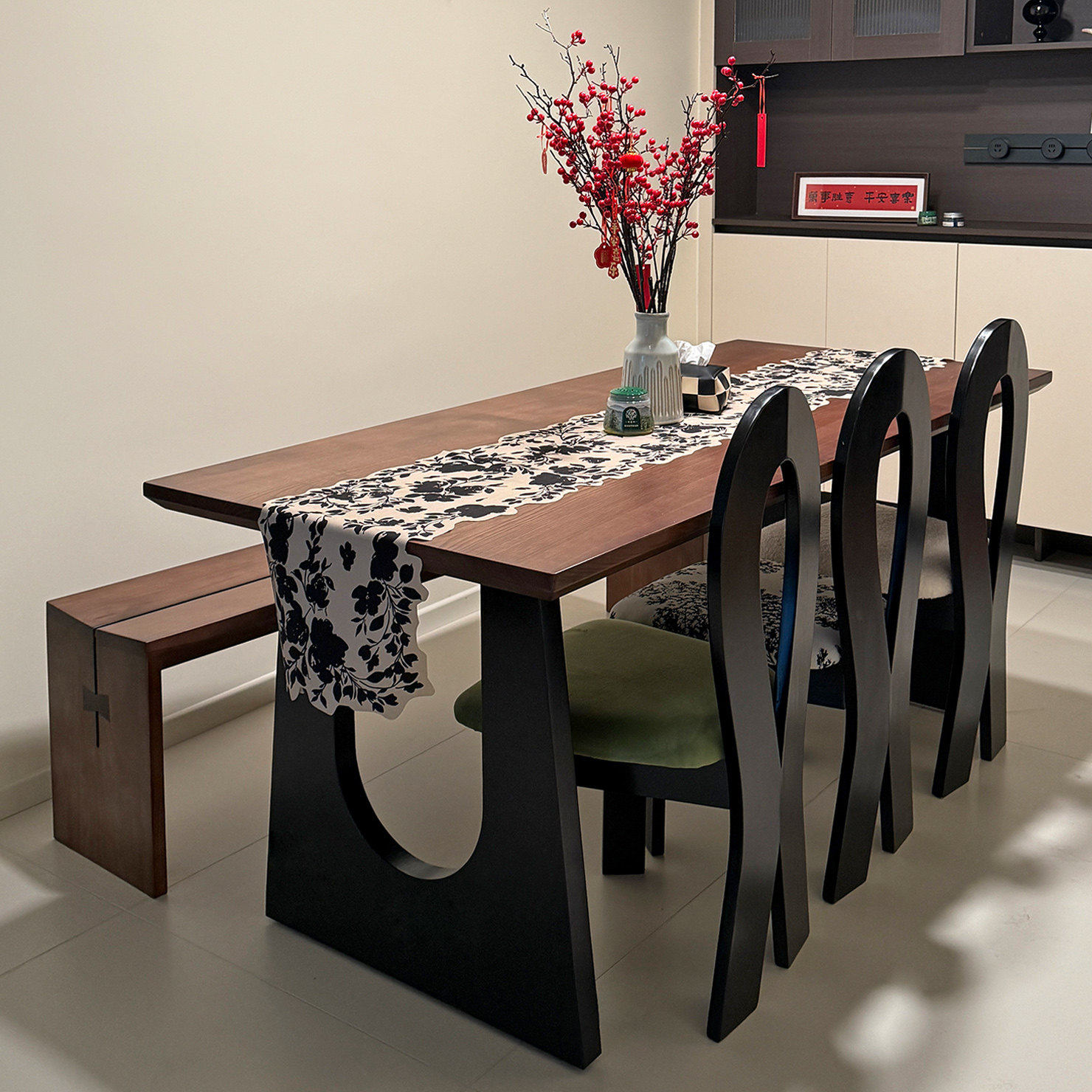 中古风实木餐桌长方形家用黑胡桃木色客厅桌子原木大板书桌工作台