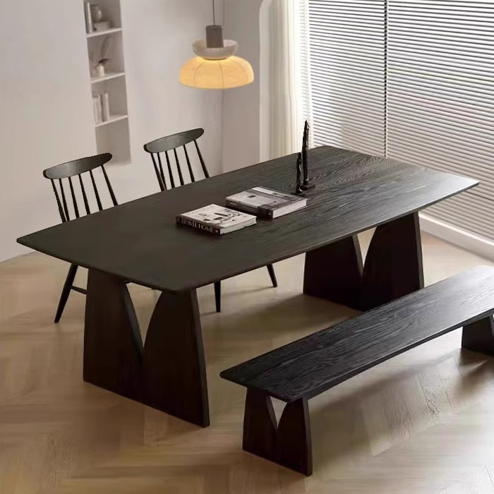 侘寂风白蜡木原木色实木餐桌现代简约ins风小户型网红水磨石餐桌