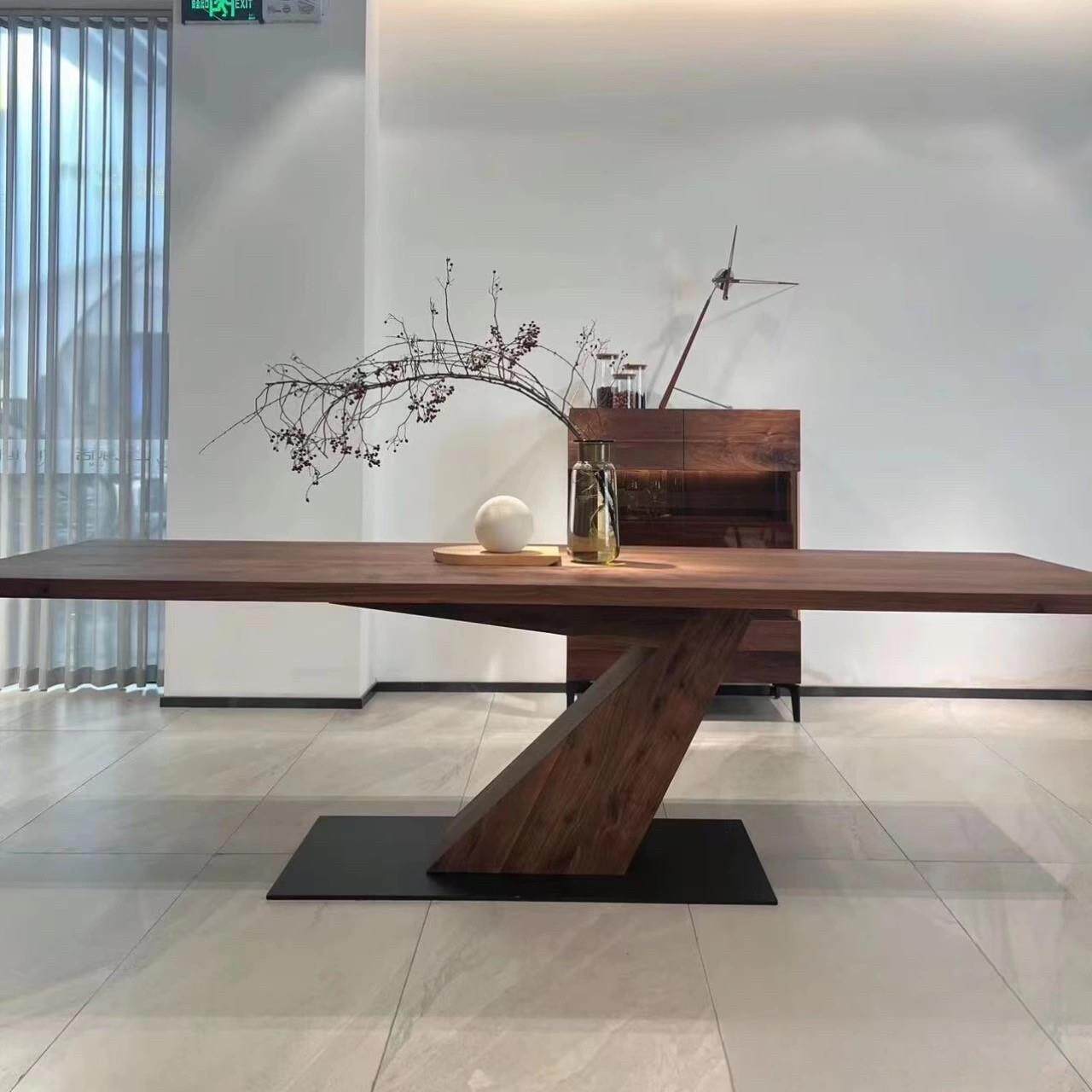 胡桃色全实木餐桌现代简约家用客厅饭桌北欧设计师原木茶桌办公桌