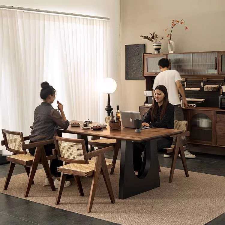 实木餐桌家用长桌洽谈茶桌胡桃色原木轻奢极简高级感长方形书桌子