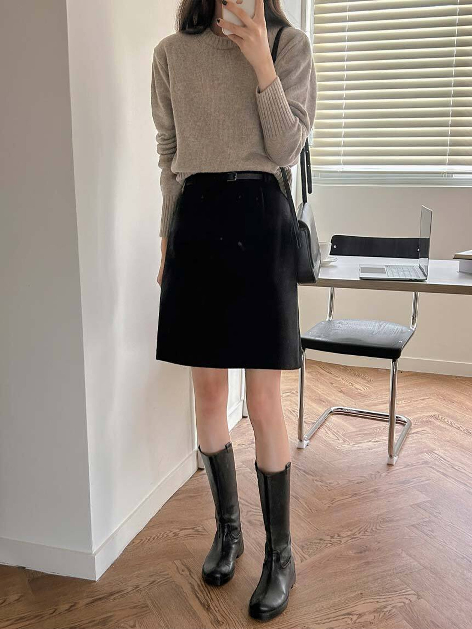 韩系毛呢半身裙女百搭高腰显瘦通勤A字短裙轻熟简约风黑色高级感