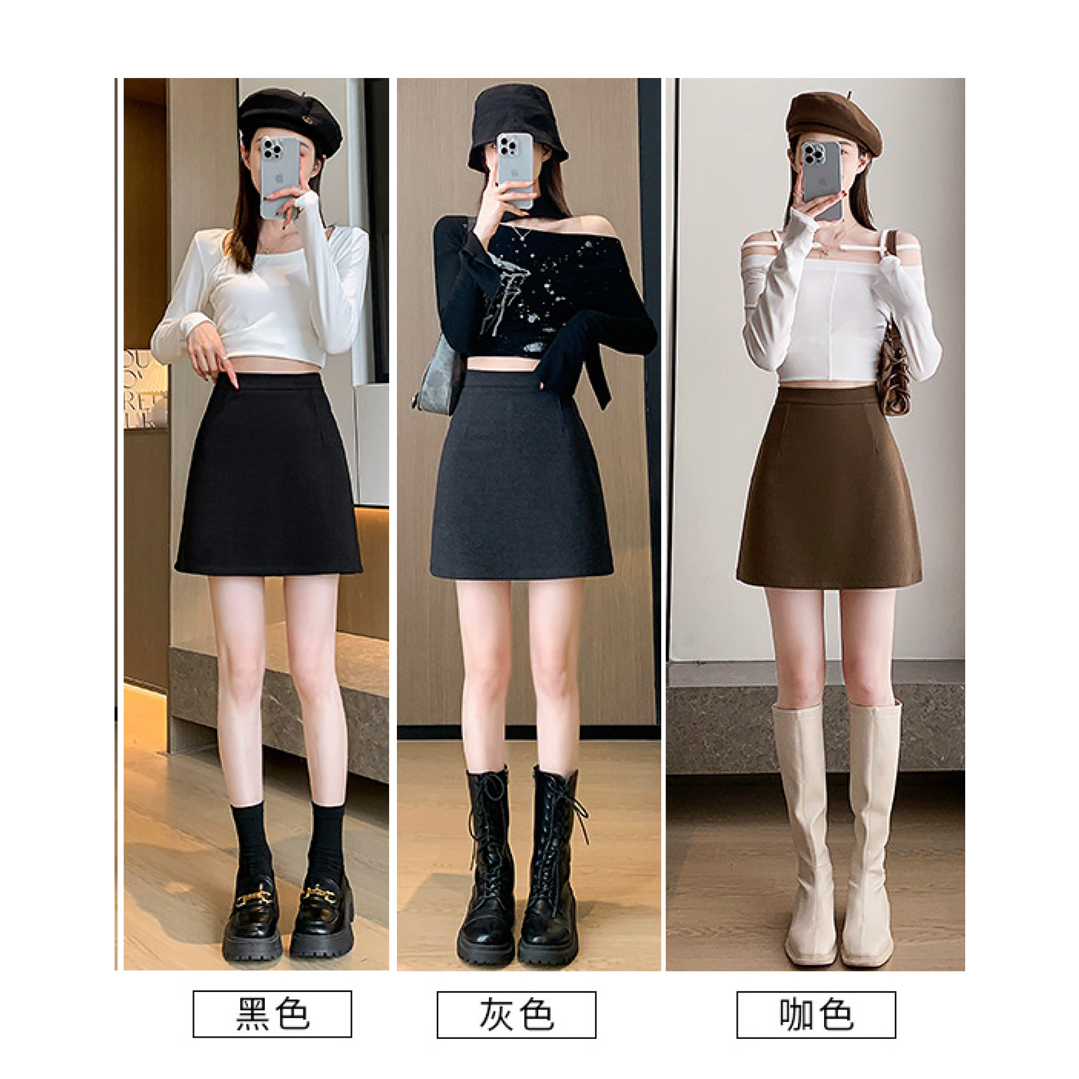 欧货羊毛呢半身裙女加厚2025冬季新款时尚百搭显瘦A字短裙靴裙