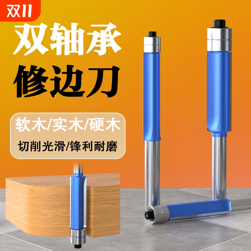 双轴承木工修边刀雕刻机双刃铣刀木材修边专用刀头开料机刀具套装