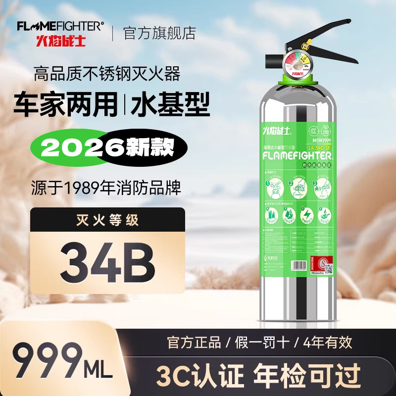 火焰战士不锈钢车载水基灭火器2026新款私家车用家用正品小型防爆