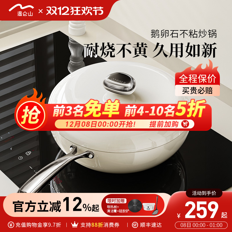 velosan温仑山陶瓷不粘锅炒锅家用炒菜锅麦饭石平底锅电磁炉燃气