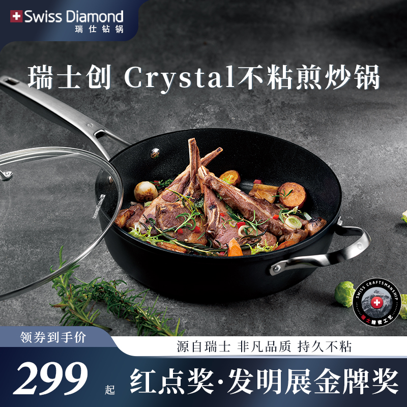 Swissdiamond瑞士不粘锅炒菜锅家用平底锅电磁炉燃气灶通用煎炒锅