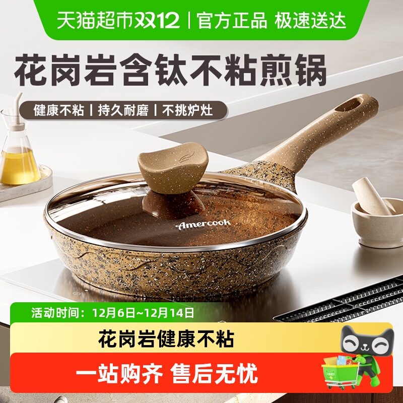 Amercook阿尔菲塔家用不粘麦饭石平底煎锅平底锅电磁炉燃气灶通用