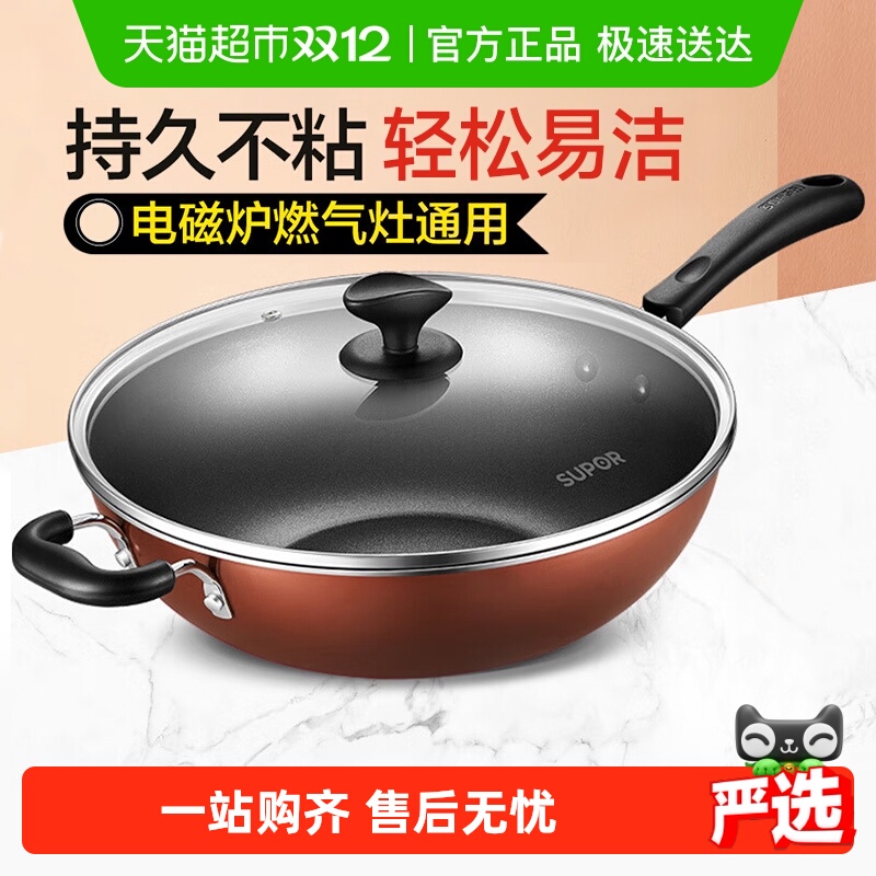 苏泊尔不粘锅炒锅家用炒菜锅电磁炉专用燃气煤气灶适用锅具平底锅