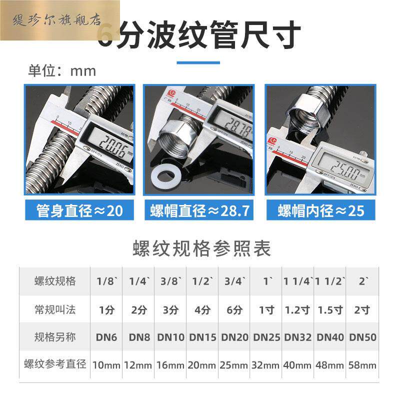 6分波纹管加厚304不锈钢冷热进水管壁挂炉金属软管耐高温高压防爆