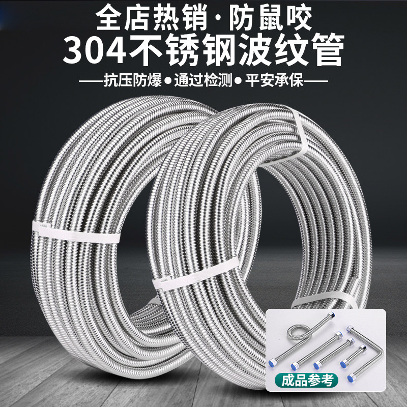 防爆冷热进出水软管304不锈钢波纹管4分6分1寸金属软管高压全尺寸