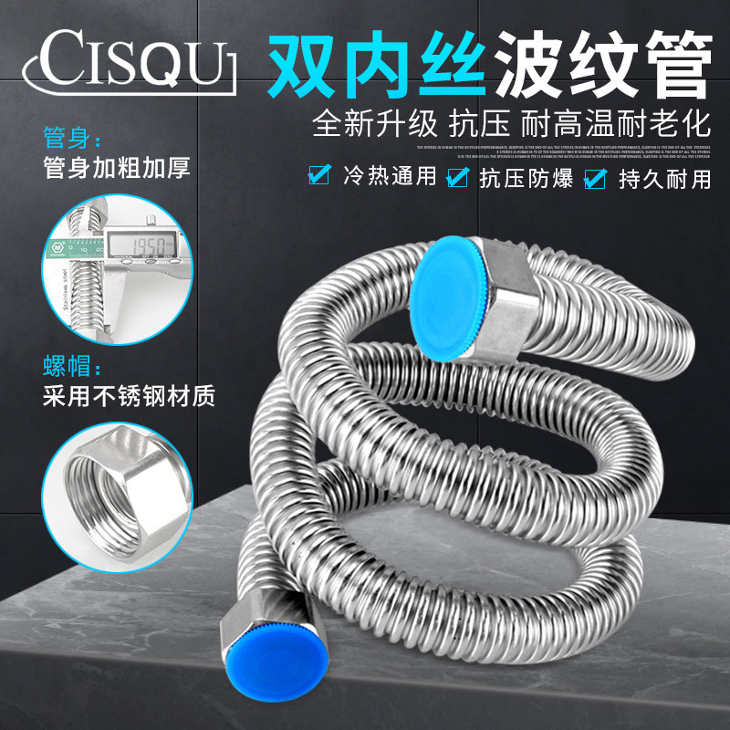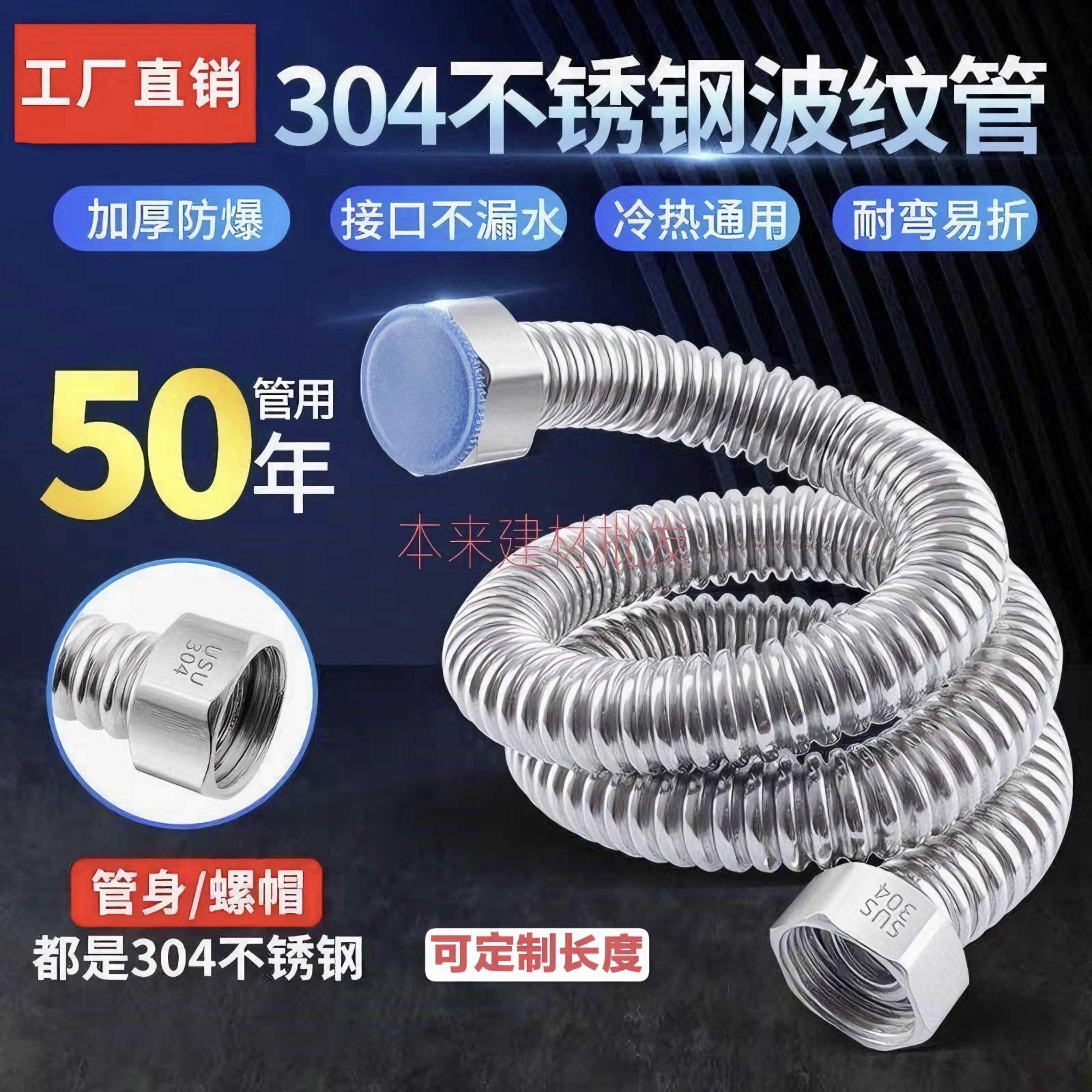304不锈钢波纹管热水器马桶冷热进出水管4分6分1寸防爆螺纹管整圈