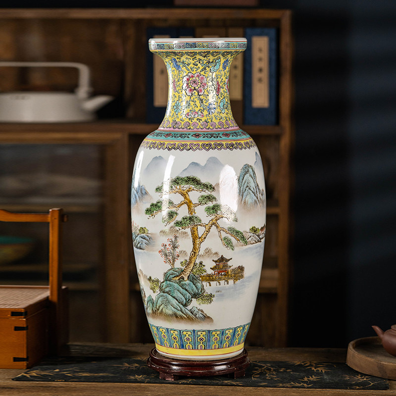 景德镇陶瓷器手绘山水落地大花瓶装饰摆件客厅酒店公司大厅工艺品