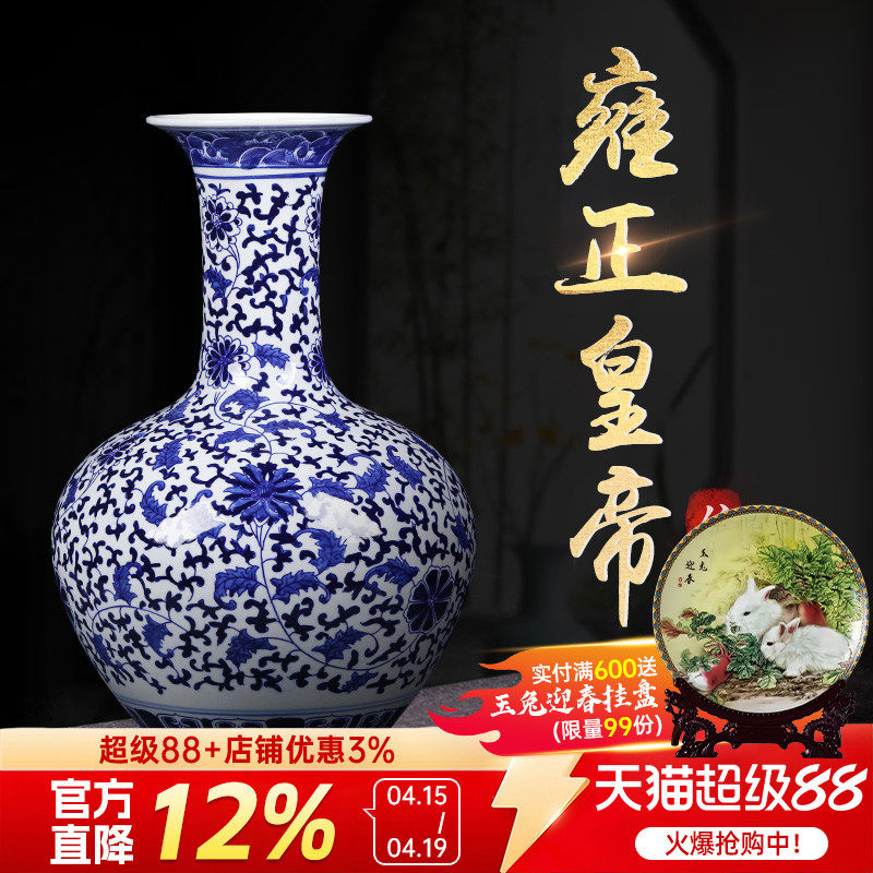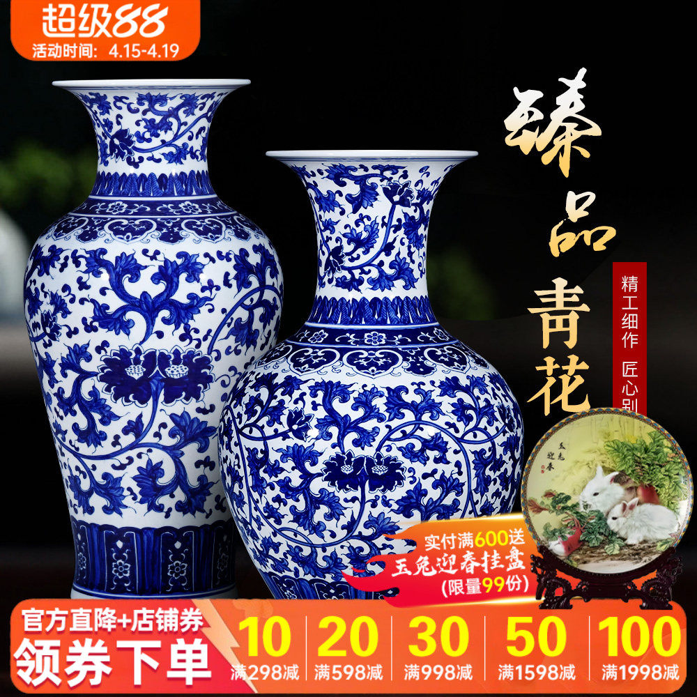 景德镇陶瓷器仿古青花瓷大花瓶摆件客厅富贵竹插花家居工艺装饰品