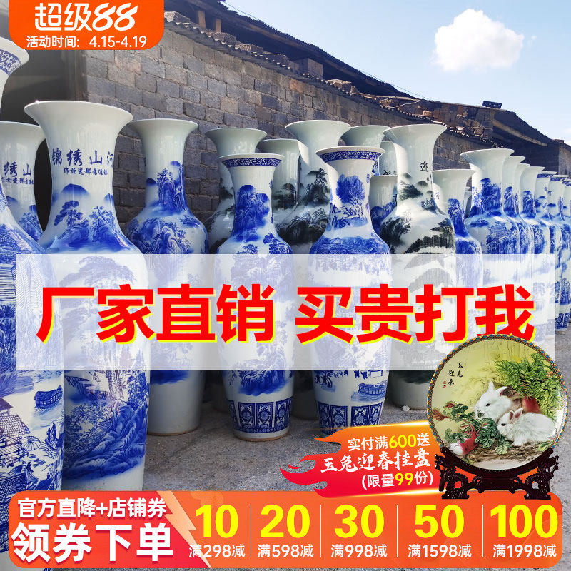 景德镇陶瓷落地大花瓶仿古青花酒店客厅装饰摆件开业礼品大号特大