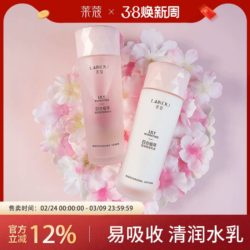莱蔻爽肤水乳液套装补水保湿滋润女细腻毛孔化妆水护肤学生旗舰店