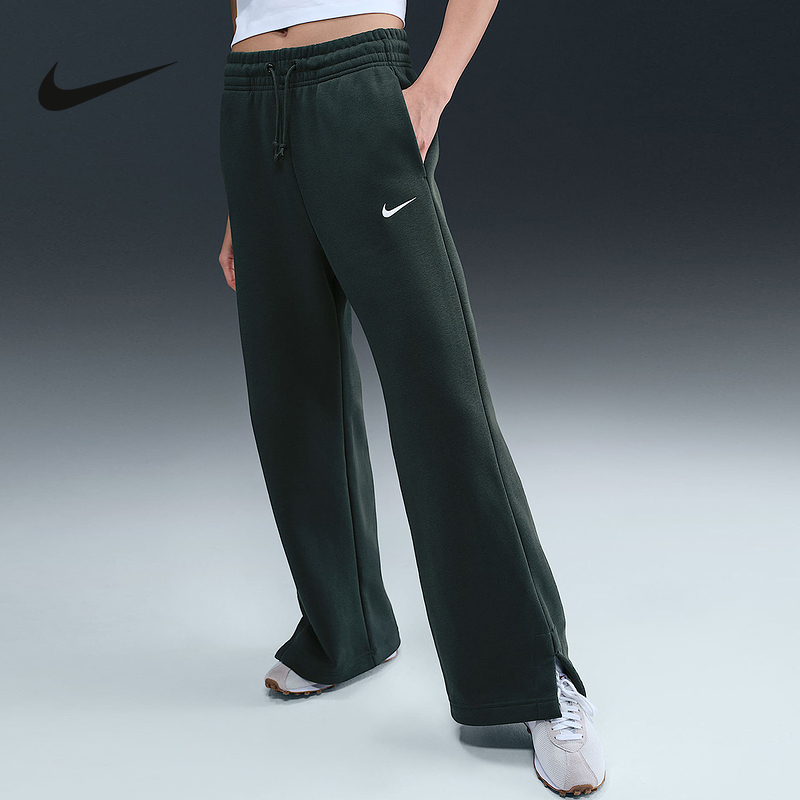 NIKE耐克女子加绒高腰阔腿长裤冬新款卫裤宽松运动裤IH1012-652