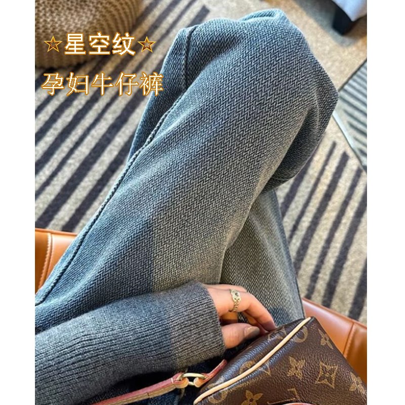 孕妇裤子外穿春秋款窄版直筒牛仔裤宽松显瘦星空纹托腹阔腿长裤冬