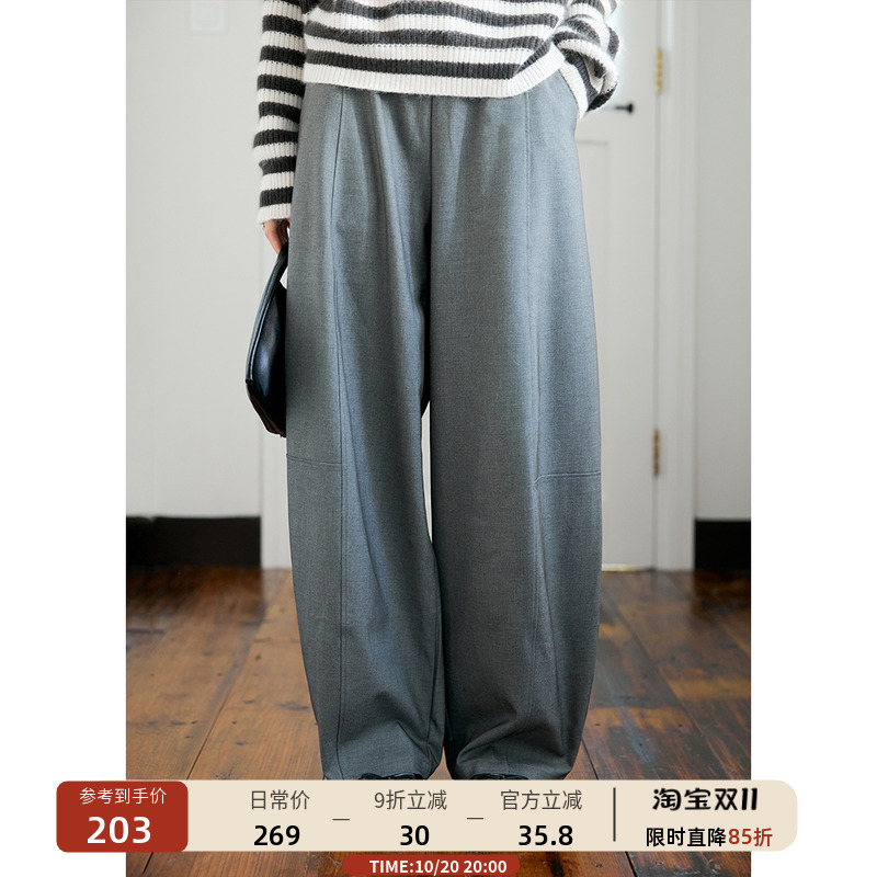 【冬季新品限时9折】宽松慵懒弯刀裤灰色西装裤女松弛阔腿长裤冬