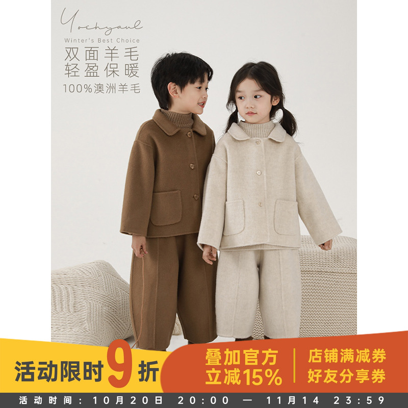 幼悠男童双面呢宽松阔腿长裤冬季新款2025儿童时尚显瘦休闲裤子潮