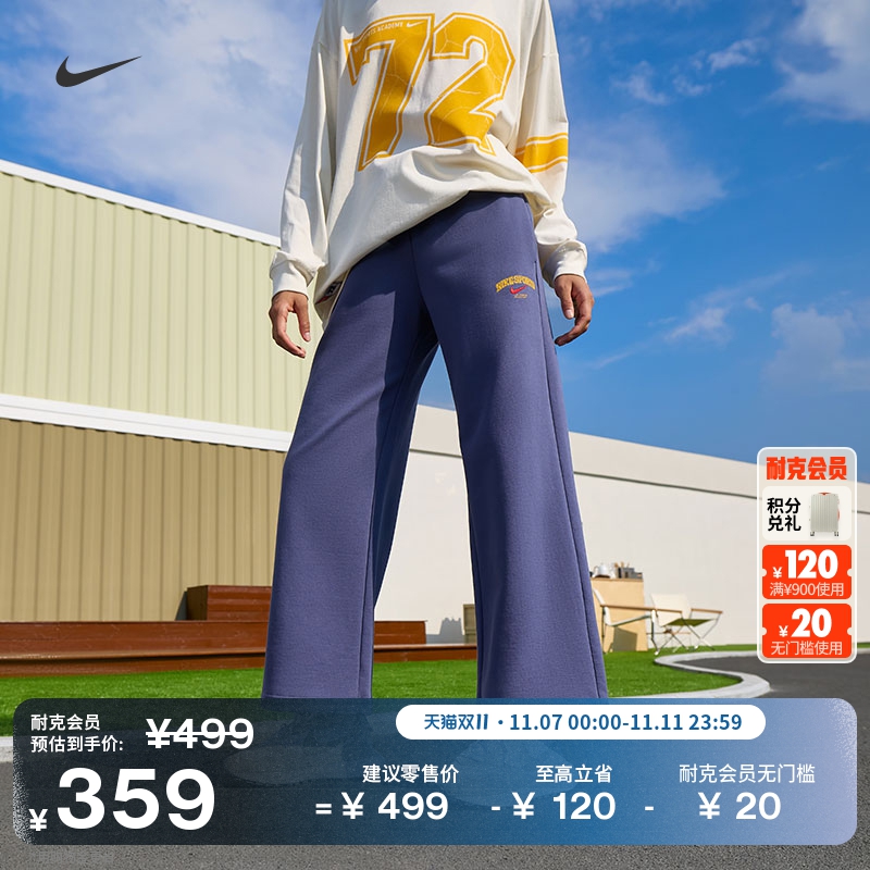 耐克女子中腰阔腿长裤冬季新款针织纯棉休闲个性卫裤NIKE IO0483