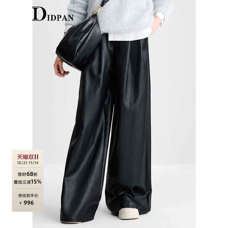 阔腿裤女皮裤2025秋冬高腰宽松显瘦小个子休闲长裤加绒九分直筒裤