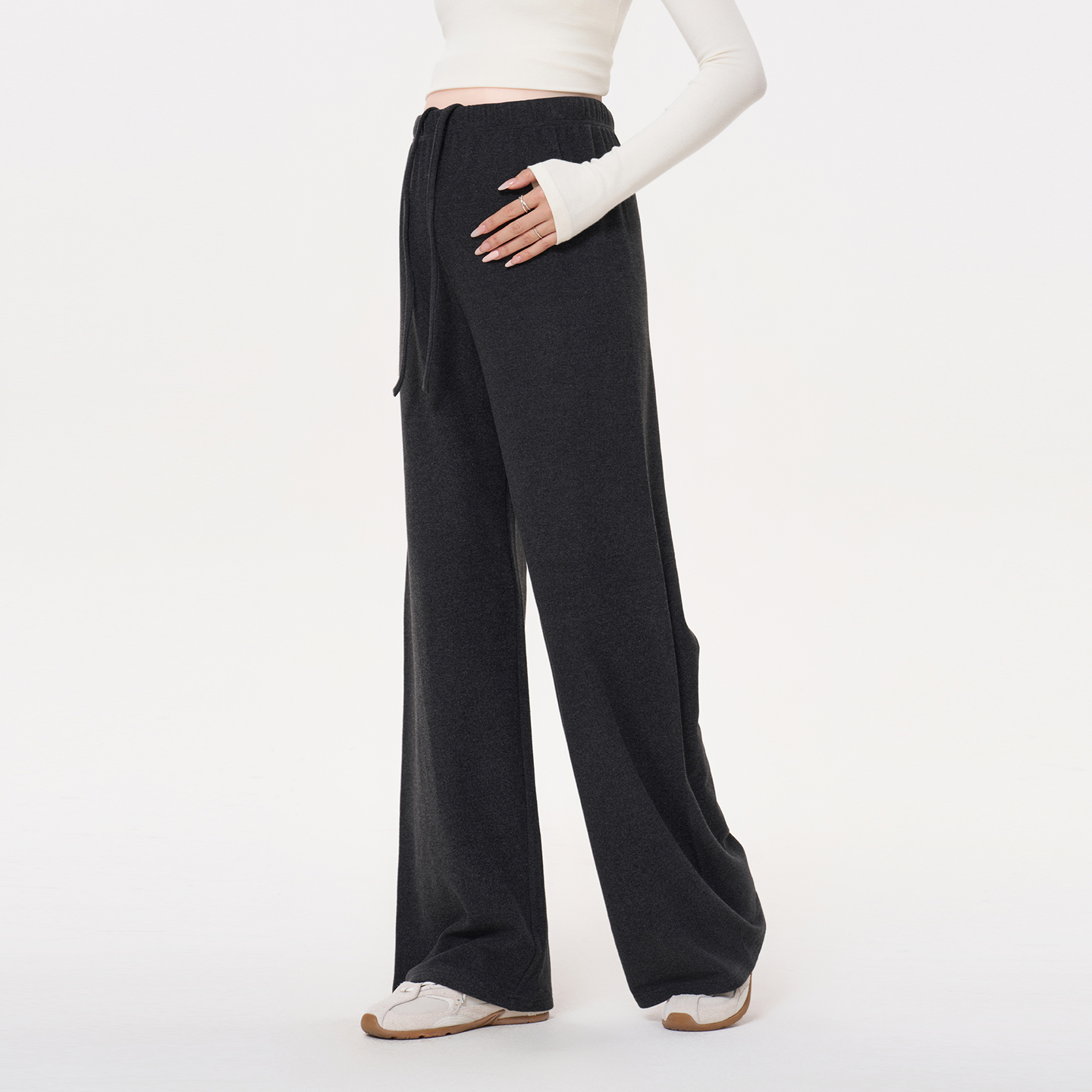 DHR 深灰色加厚绒感直筒拖地弯刀裤宽松阔腿休闲长裤子女大码秋冬