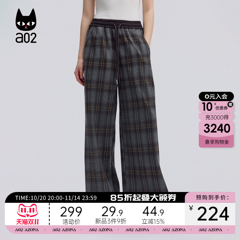 a02宽松格子裤子女2025新款冬季加厚保暖阔腿长裤冬装直筒裤