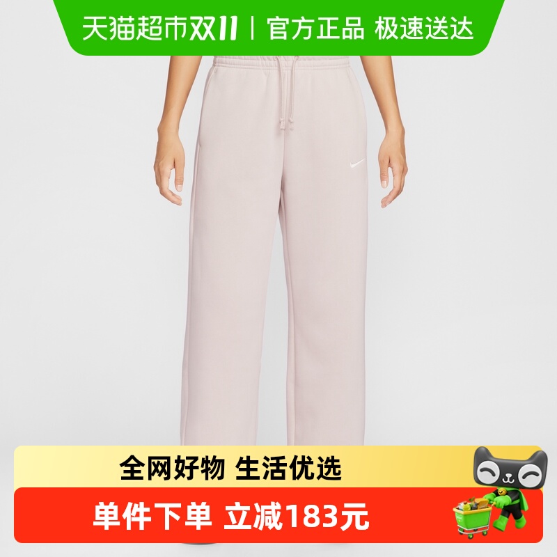 NIKE耐克女子加绒高腰阔腿长裤冬新款卫裤粉色运动裤IH1012-667
