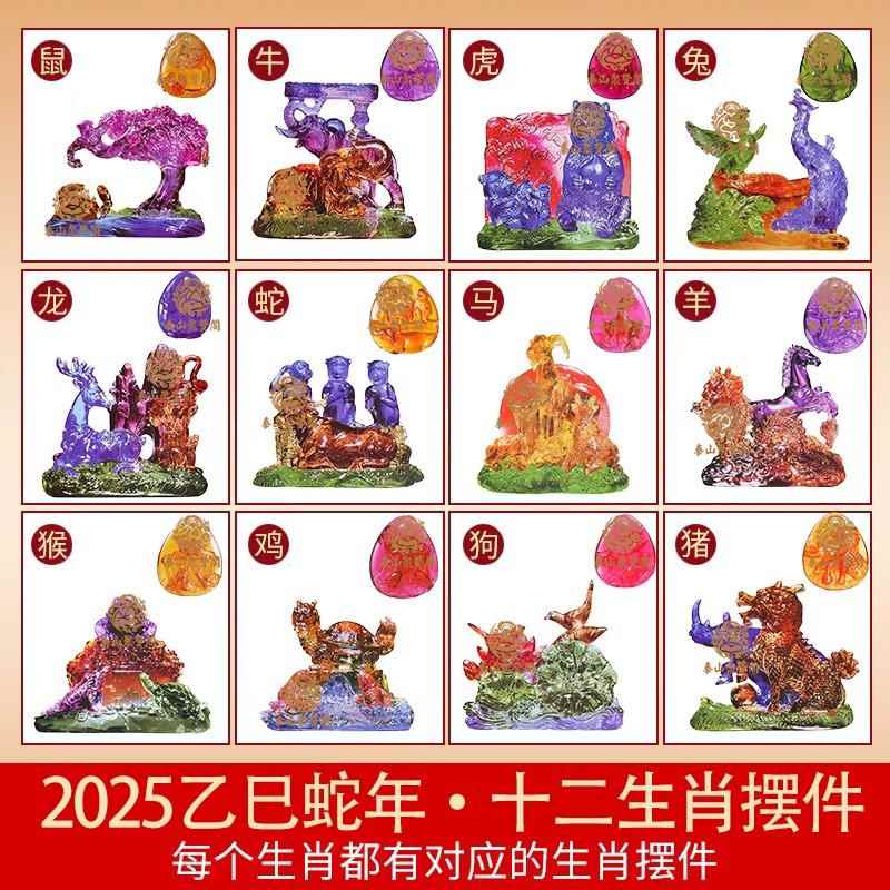 宋韶光2025蛇年吉祥物鼠牛兔虎龙蛇羊马猴鸡狗猪生肖琉璃摆件吊坠