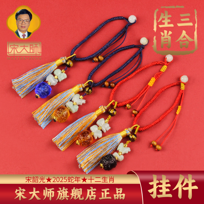 宋韶光大师2025蛇年十二生肖三合挂件橙蓝彩流苏款琉璃幸运包挂