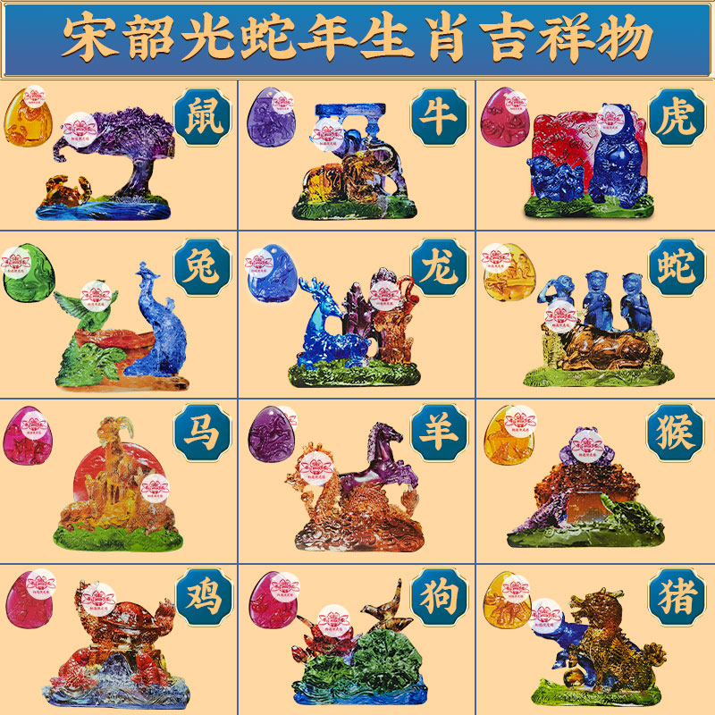 宋韶光2025蛇年吉祥物生肖鼠牛虎兔龙蛇马羊猴鸡狗猪琉璃摆件吊坠