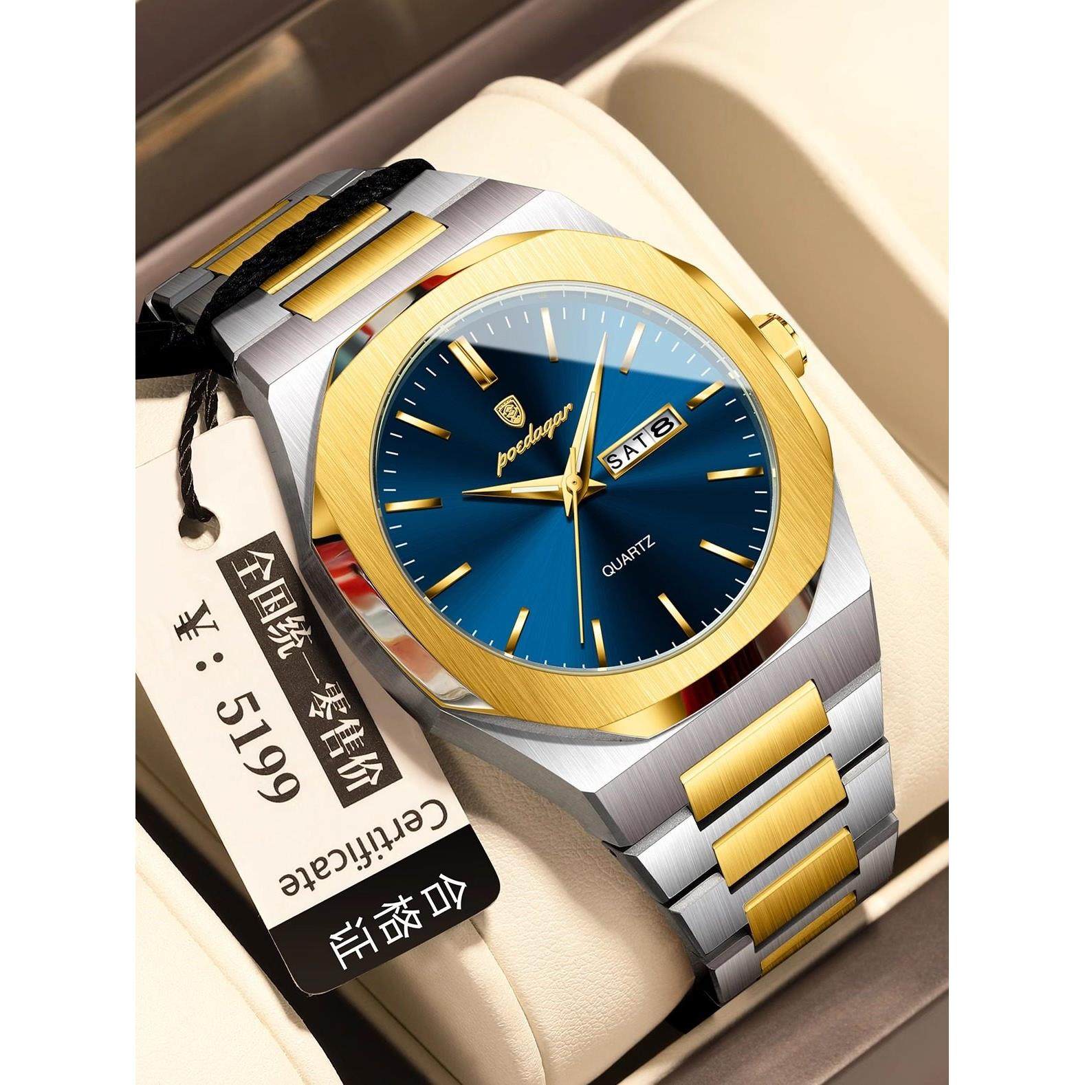 新款瑞士男士手表简约时尚双日历夜光潮流防水手表男款石英腕表男