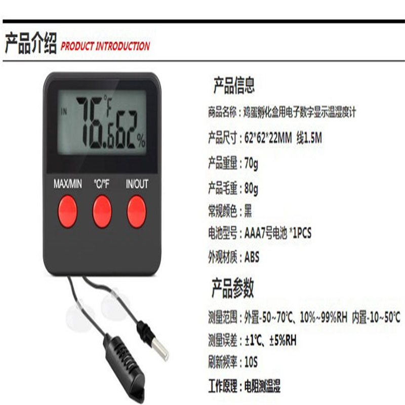 大棚养殖家用 孵化发酵养殖高低温报警115 温度计 湿度计74