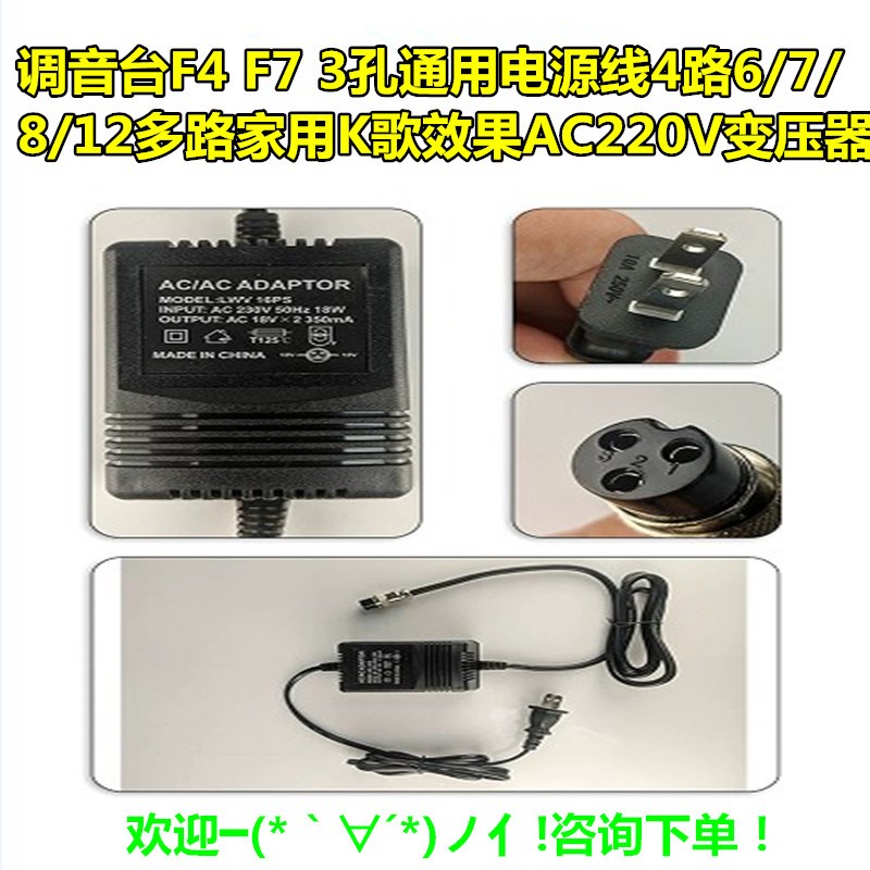 调音台F4 F7 3孔通用电源线4路 6 7 8 12多路家用K歌效果AC变压器