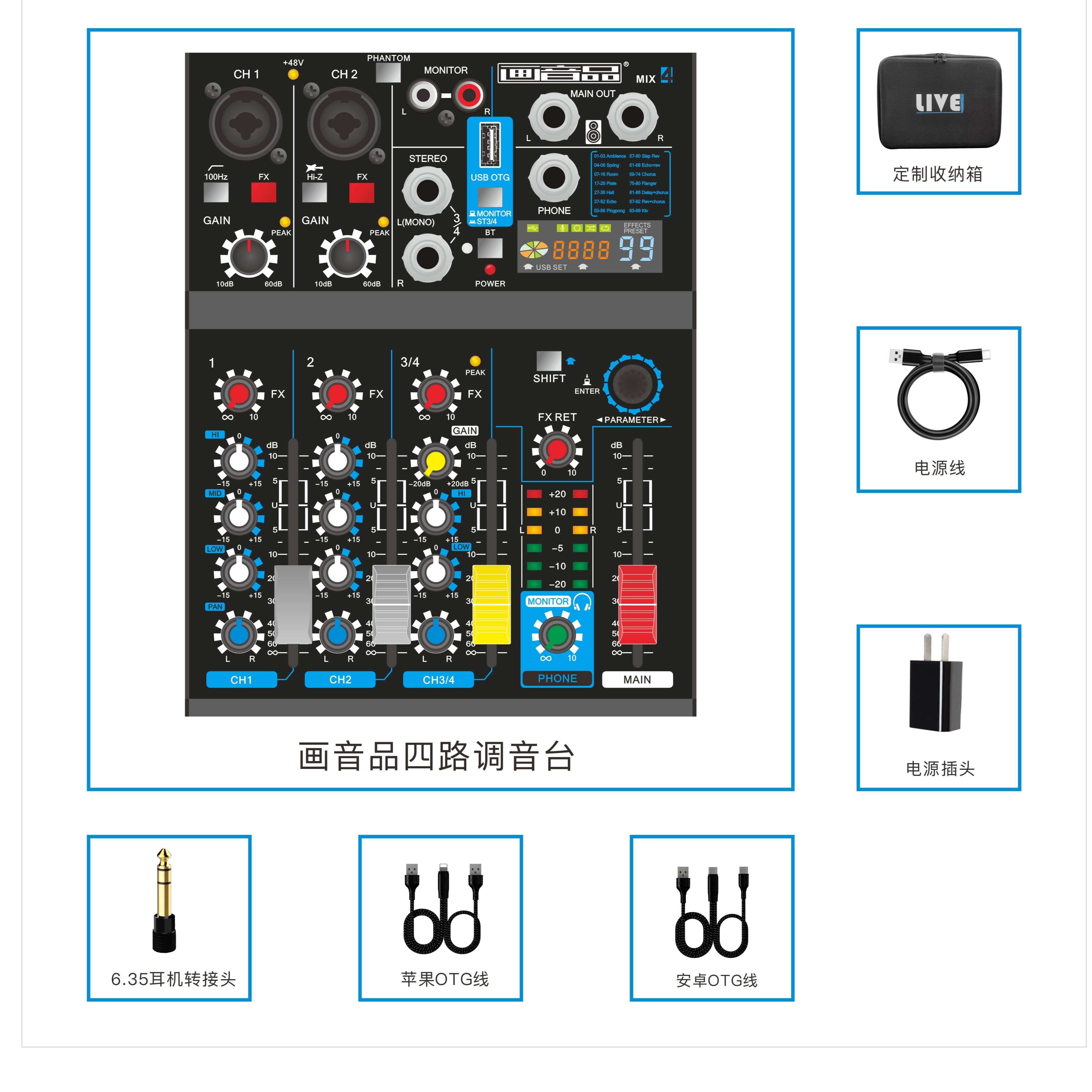 4路直播声卡otg调音台迷尔型带效果器小混音器mixer户外调音台