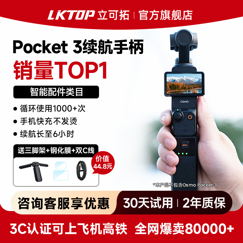 【3C认证可上飞机】LKTOP适用大疆Pocket3续航手柄5000毫安电池充电宝口袋相机充电手柄Pocket 3配件延长手柄