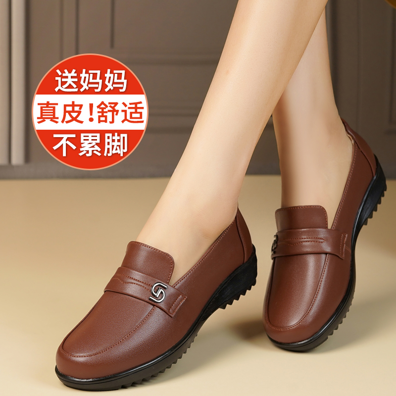 春秋款真皮女鞋2025新款妈妈鞋舒适软底中老年人皮鞋防滑平底单鞋