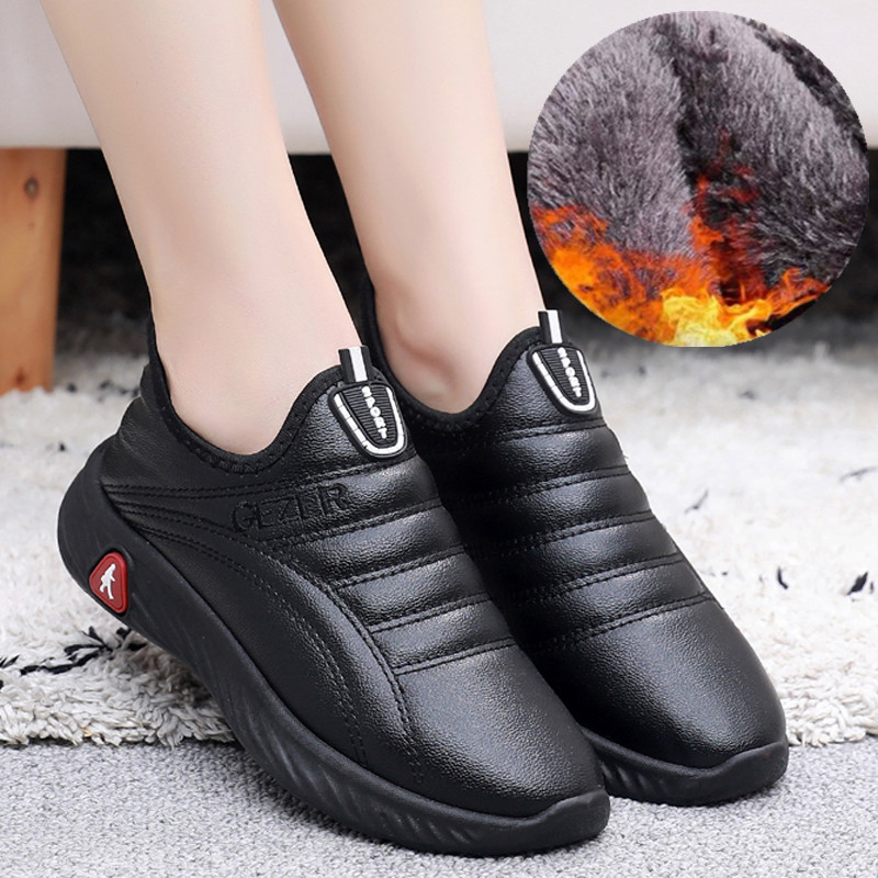 冬季妈妈鞋中老年人棉鞋女防滑加绒老人皮鞋保暖软底女士羊毛鞋子