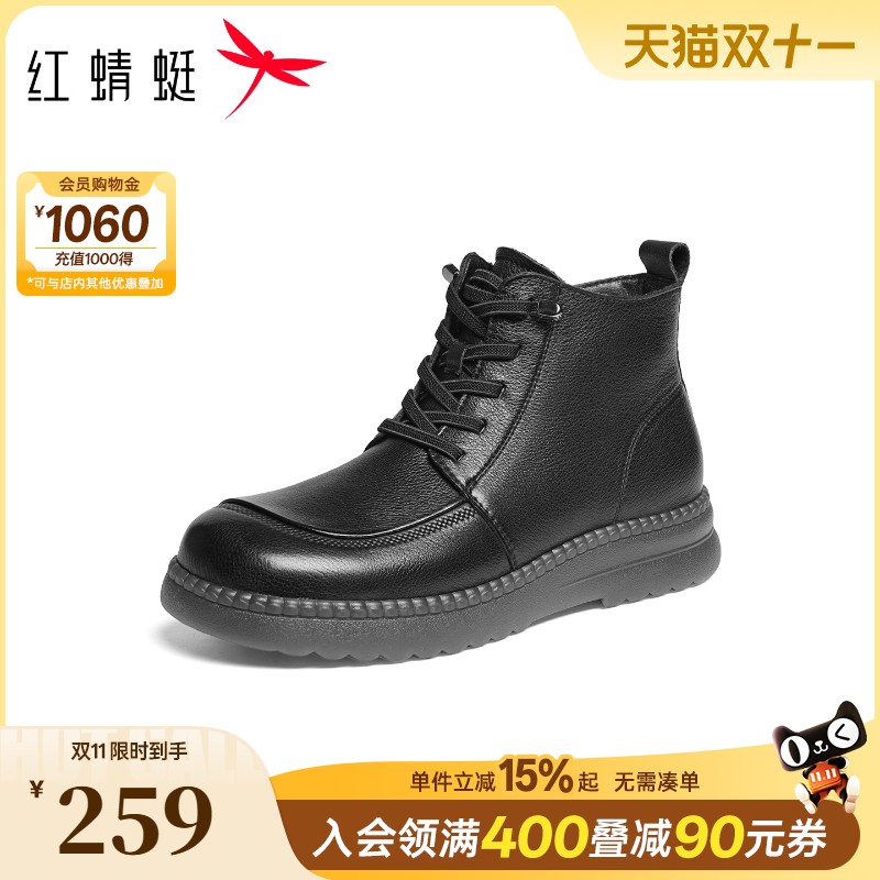 红蜻蜓官方妈妈鞋冬季皮鞋防滑鞋子女鞋保暖女靴中老年人真皮棉鞋