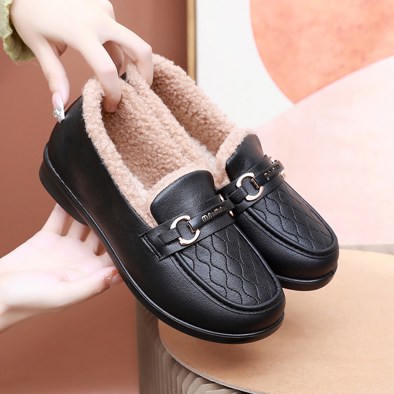 2024新款春秋冬季女鞋子百搭单鞋女妈妈加绒棉鞋中老年人休闲皮鞋