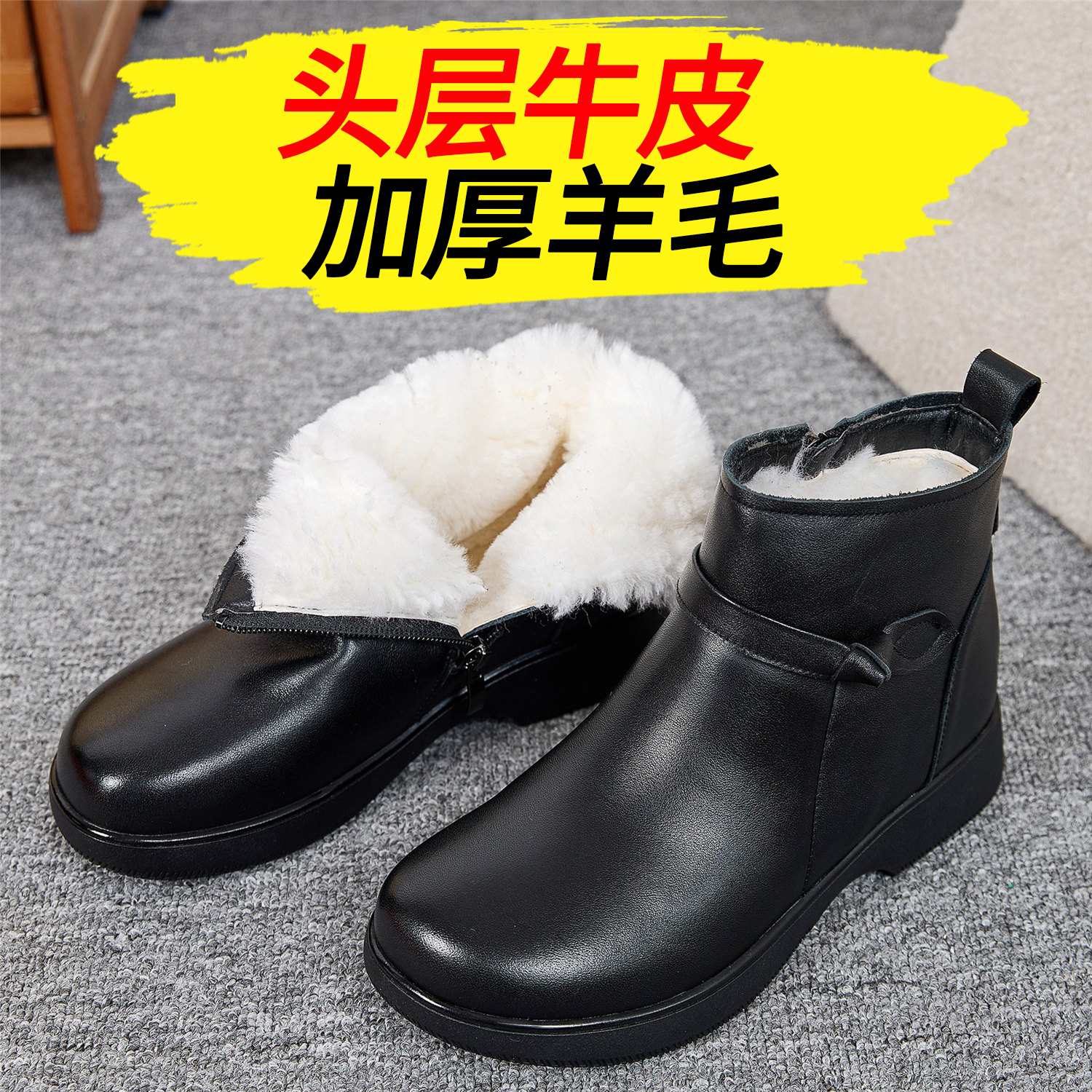 冬季妈妈鞋棉鞋加绒中老年人鞋子女防滑新款真皮女士皮鞋羊毛靴子