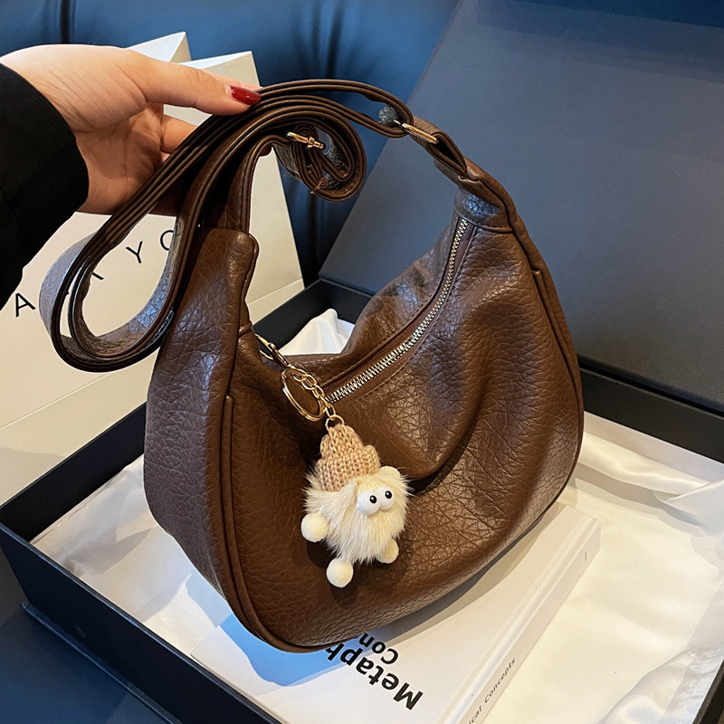 秋冬软皮包包女大容量单肩斜跨包大学生上课书包通勤松弛感单肩包
