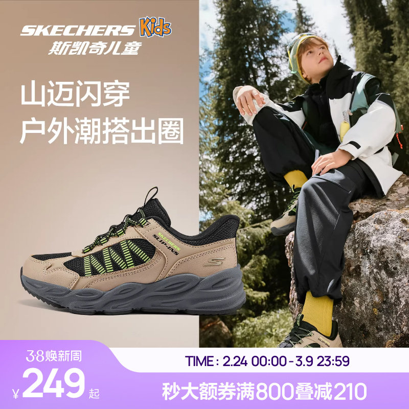 Skechers斯凯奇儿童山迈闪穿鞋春秋男童运动鞋专业户外徒步登山鞋