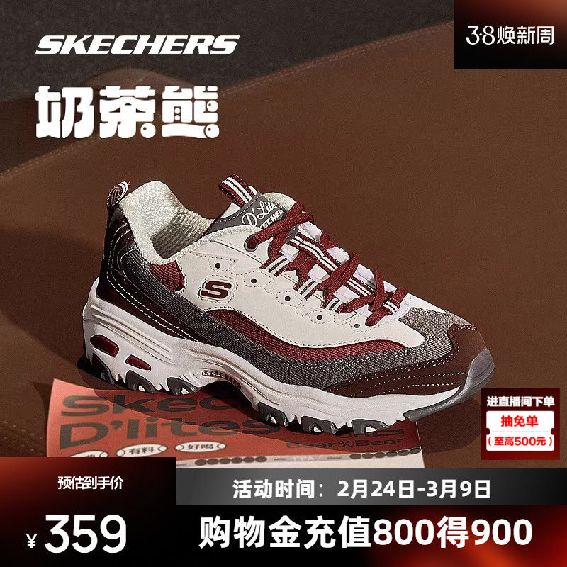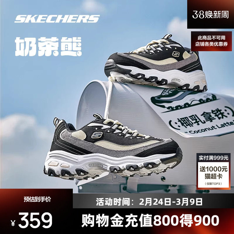 Skechers斯凯奇奶茶熊椰乳拿铁新款复古老爹鞋男女情侣运动老爹鞋