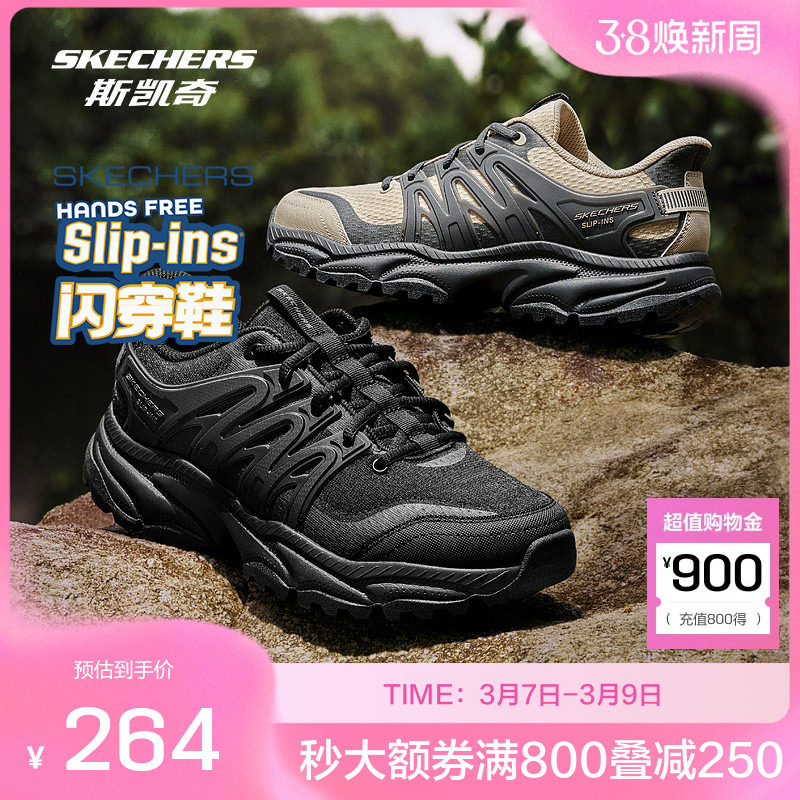 斯凯奇官方outlet户外鞋男士低帮绑带闪穿户外运动鞋徒步鞋
