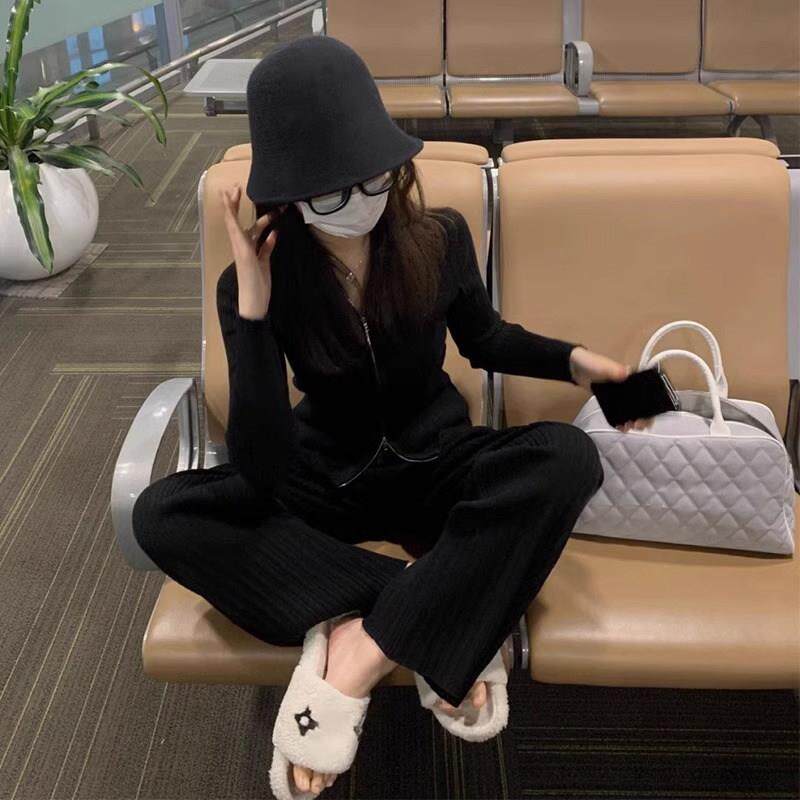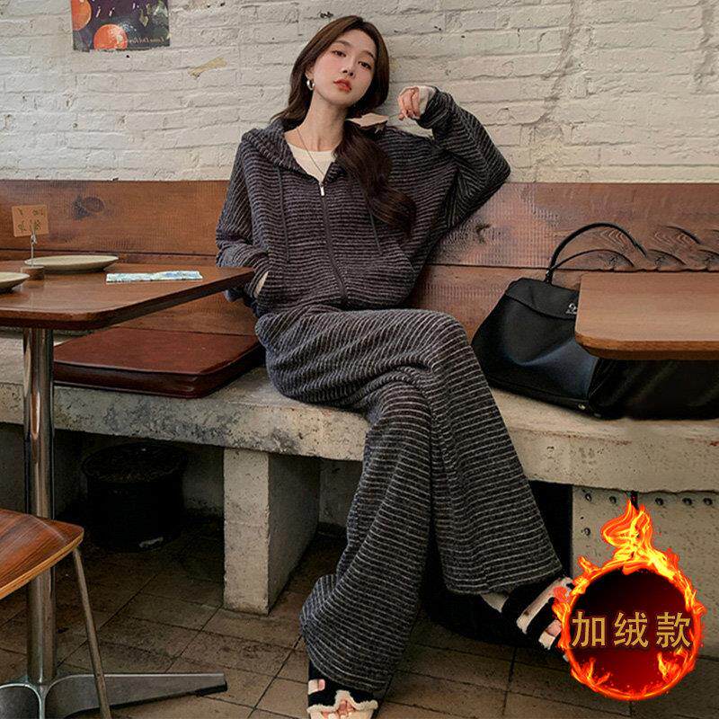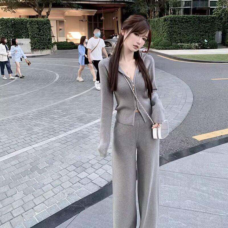 欧洲站秋冬装女款2024年新款时尚休闲 运动套装女阔腿裤针织两件