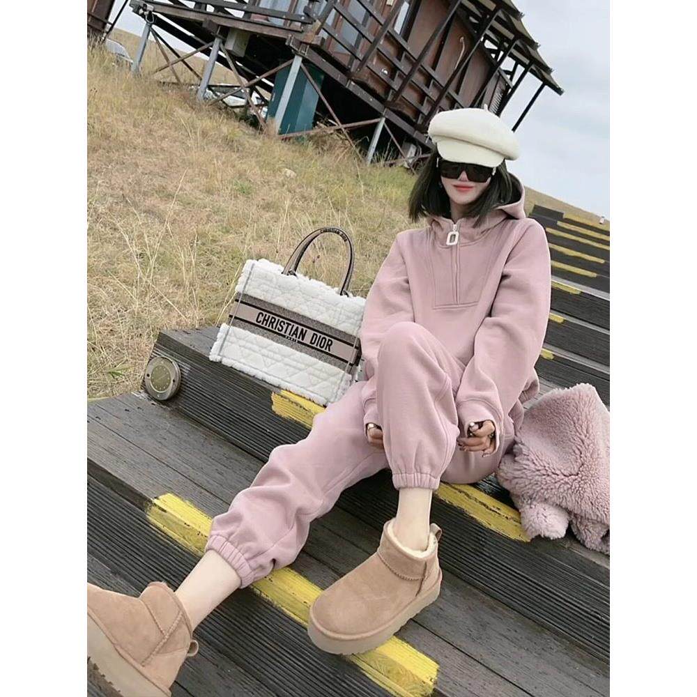欧洲站休闲运动套装女秋冬2025年新款时尚洋气加绒加厚卫衣两件套